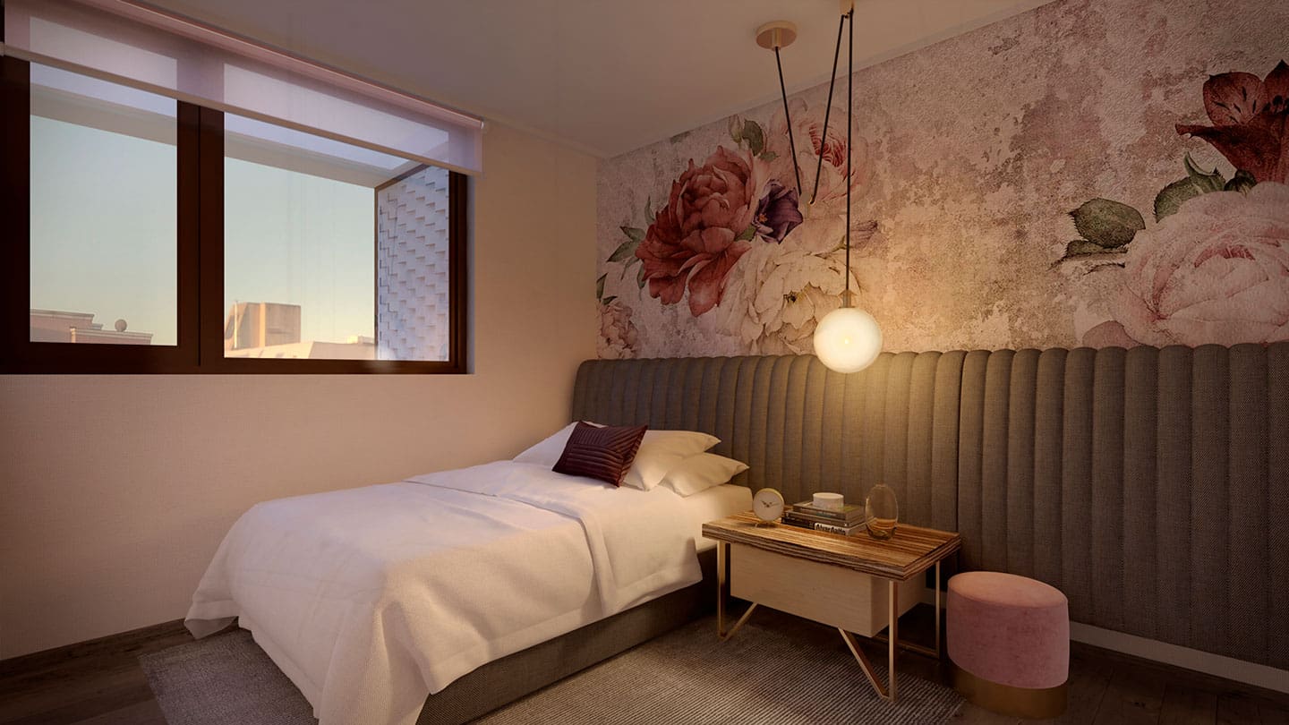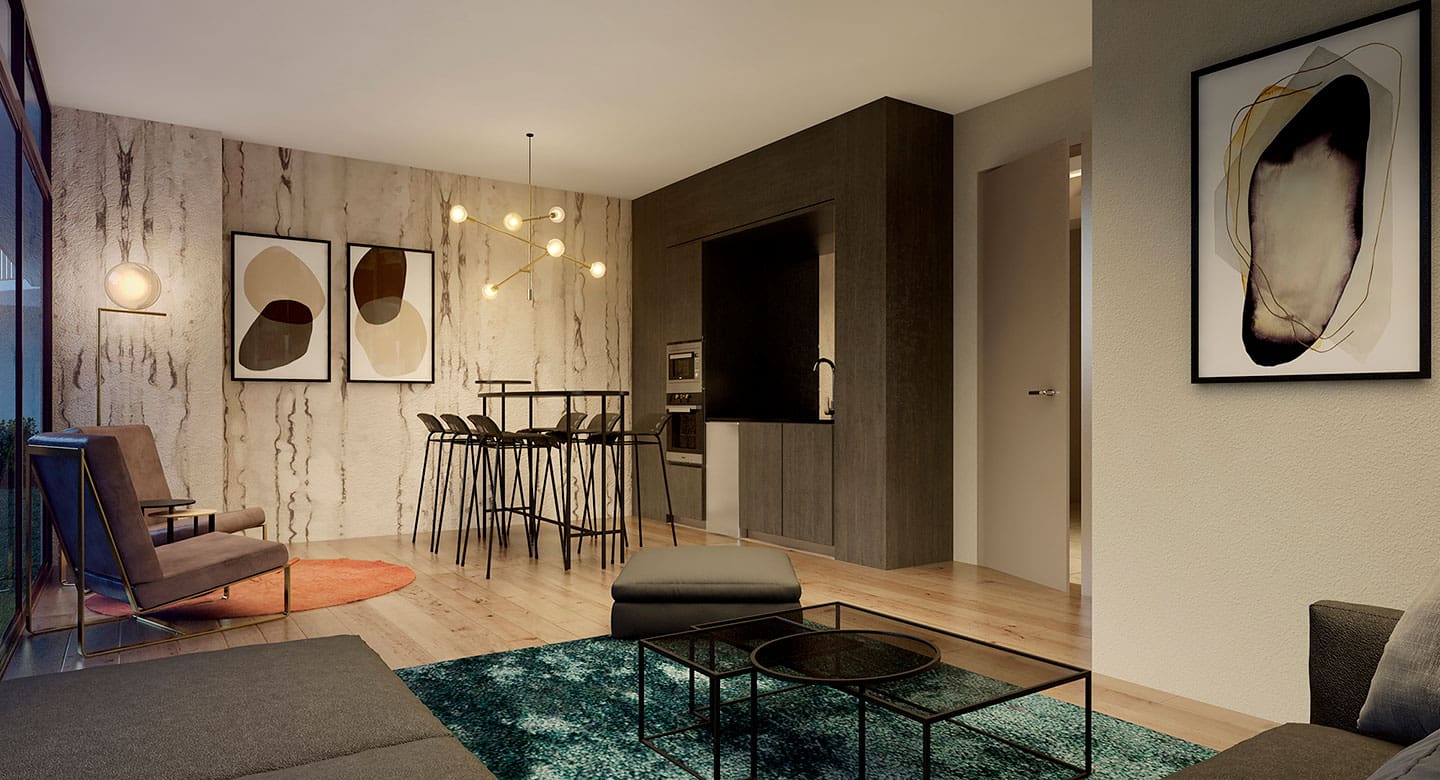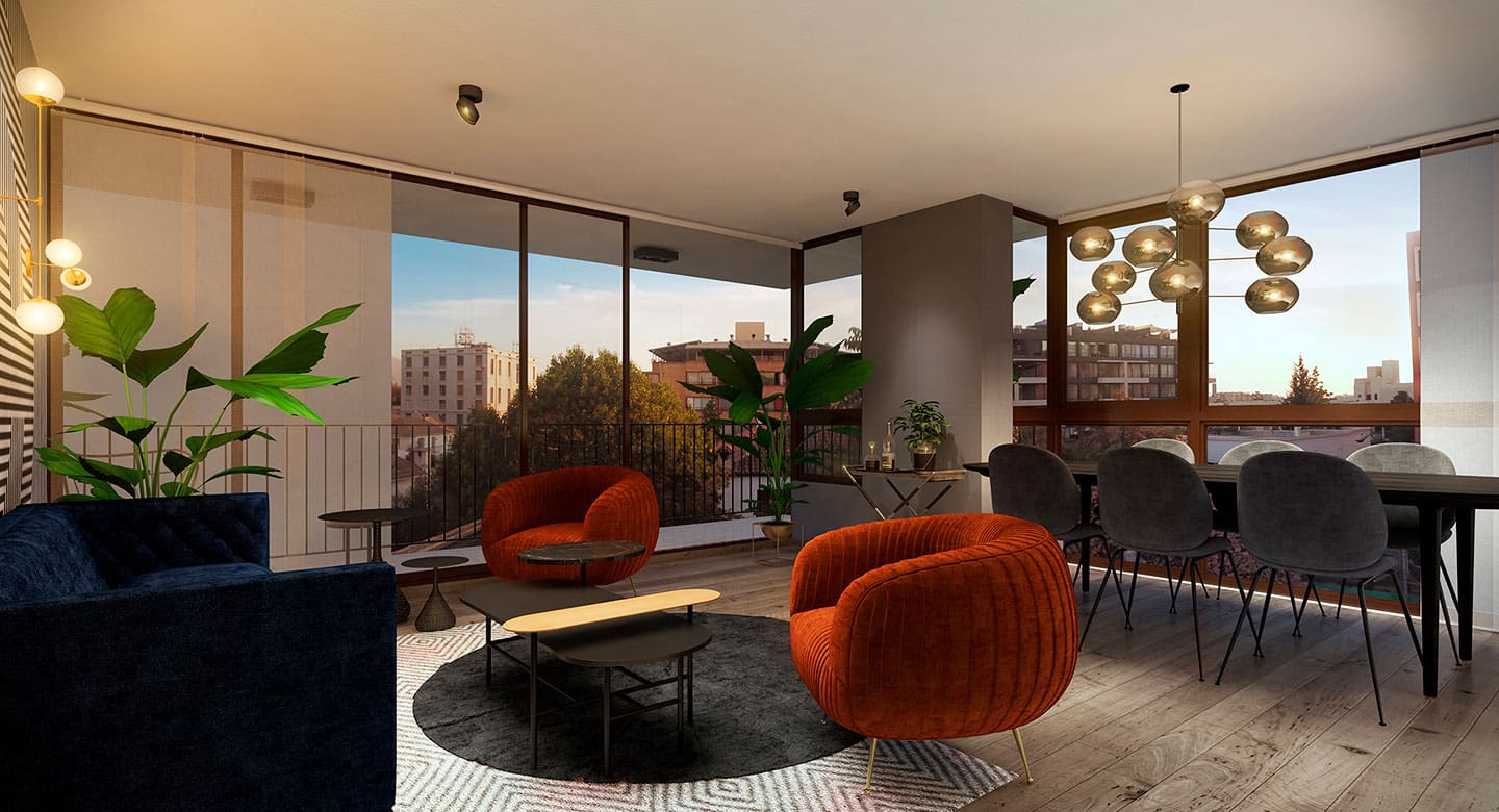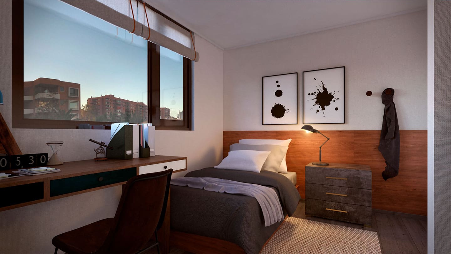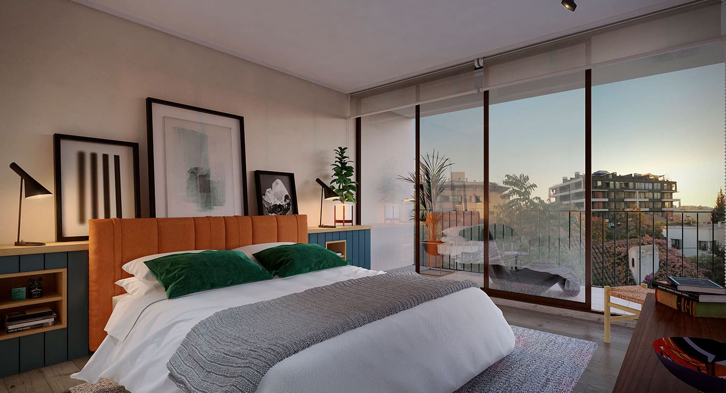 Edificio con departamentos single, 2 y 3 dormitorios desde 64 m2 hasta 116 m2 totales, que incluyen tecnología domótica, el sistema de automatización de hogares más avanzado del mundo que permite controlar los accesos, la iluminación y los movimientos dentro de tu vivienda de forma remota.